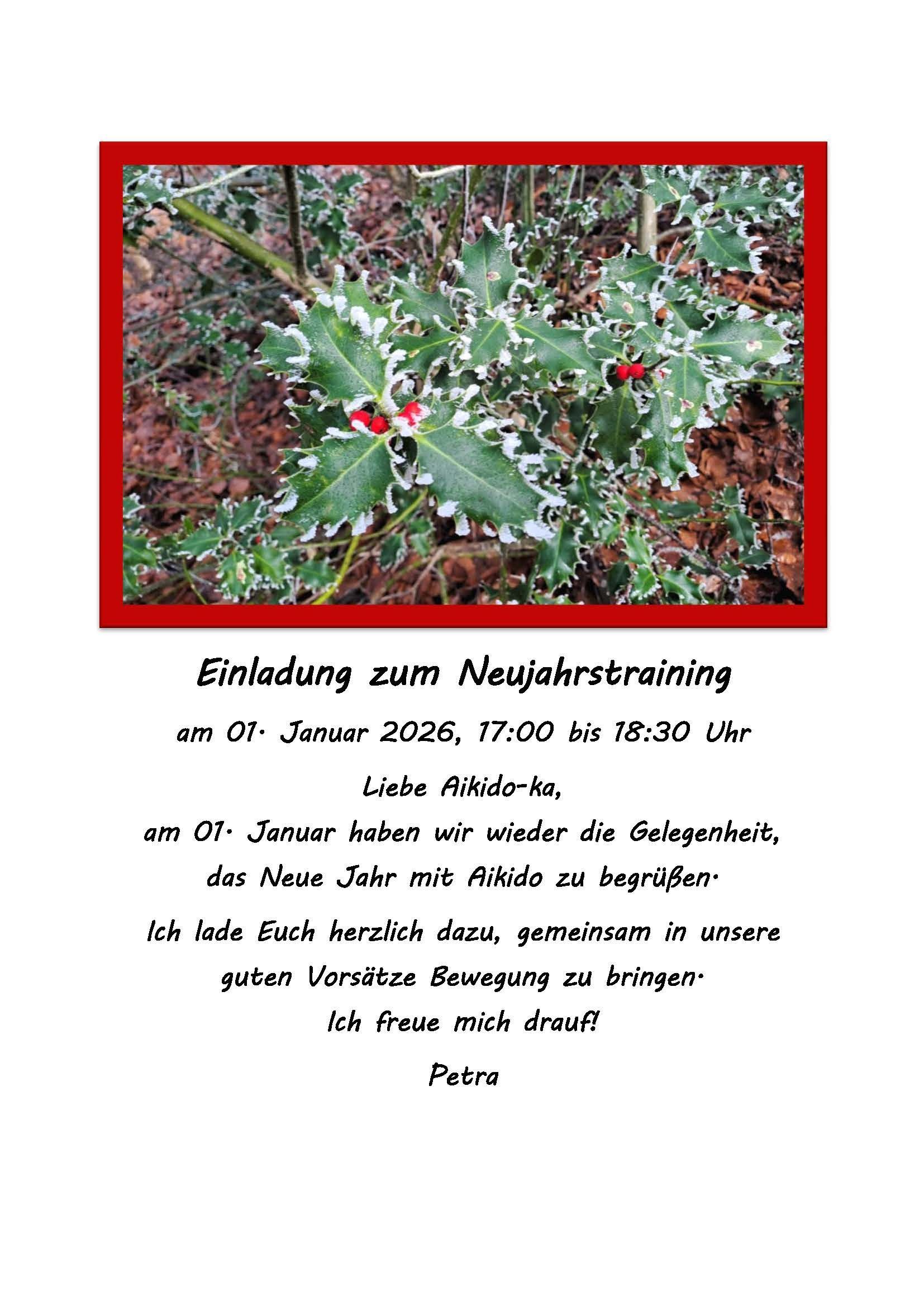 Am Donnerstag, den 1. Januar findet unser traditionelles Neujahrstraining für Mitglieder statt. Beginn 17.00 Uhr